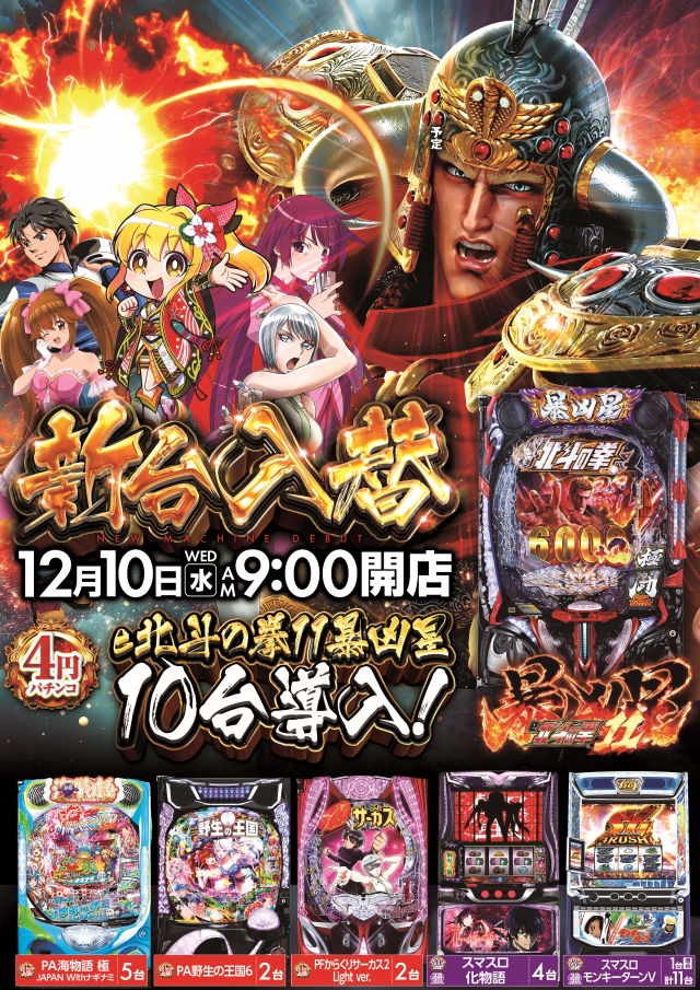 ■e 北斗の拳11 暴凶星 ■e アズールレーン2 THE ANIMATION 超次元 ■e地獄少女 7500Ver. ■PA海物語 極JAPAN Withナギナミ ■PFからくりサーカス2 Light ver. ■PA野生の王国6