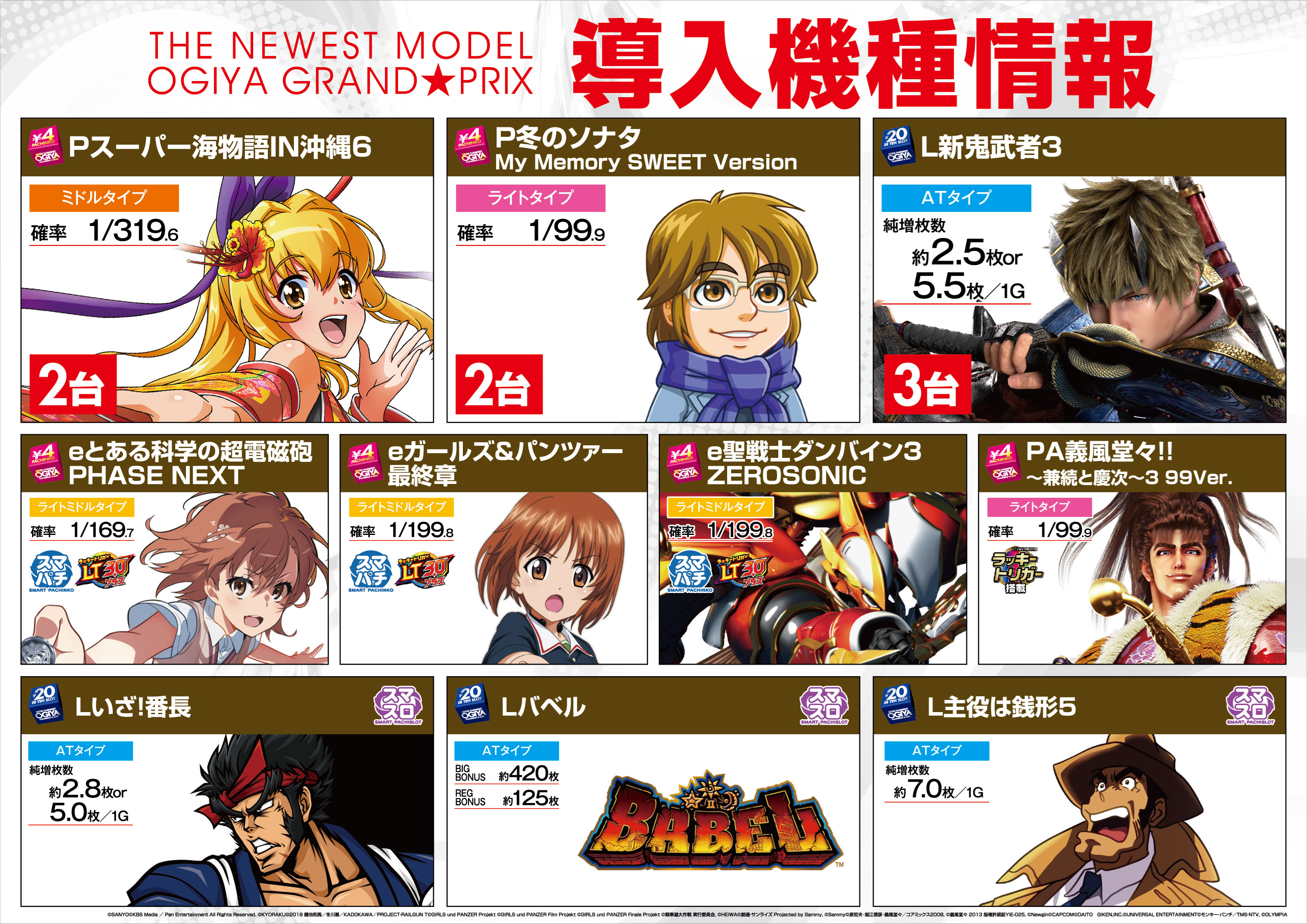 ■Pスーパー海物語IN沖縄6 ■eとある科学の超電磁砲 ■e 聖戦士ダンバイン3 ■P 冬のソナタ My Memory SWEET Version ■e ベルセルク無双 第2章 ■eガールズ&パンツァー 最終章 ■PA義風堂々!!~兼続と慶次~3 99Ver. ■デカスタPシュタインズ・ゲート ゼロ まゆしぃば~じょん ■PFダンジョンに出会いを求めるのは間違っているだろうか2