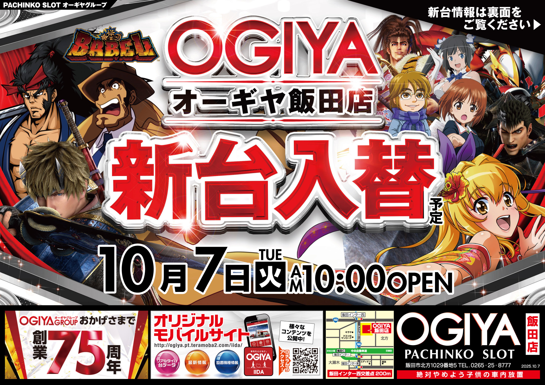 スロット L鬼武者3 AT4台 L主役は銭形5 AT2台 Lいざ!番長 AT1台増台
