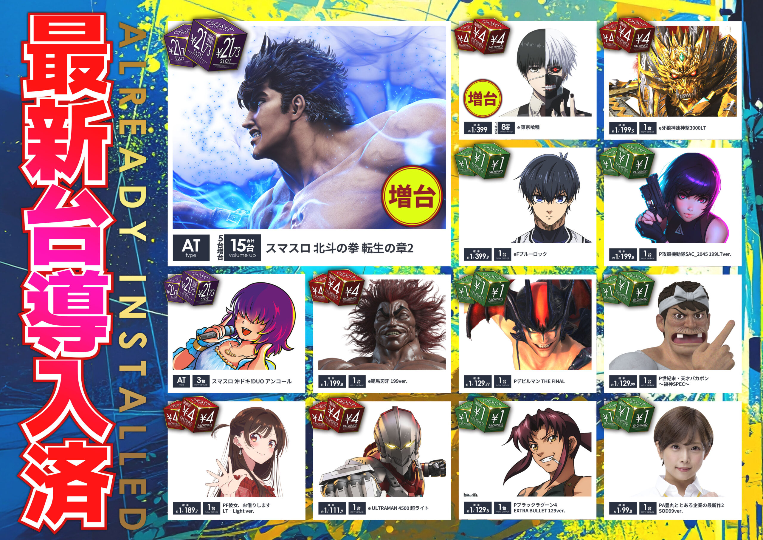 ■e吉宗 極乗3000ver. ■e 盾の勇者の成り上がり アルティメット199ver. ■e ゴジラ対エヴァンゲリオン2 超デカゴールド ■eようこそ実力至上主義の教室へ ■e ソードアート・オンライン 閃光の軌跡 99Ver. ■PA清流物語4 ウキウキ79ver. ■Pリングにかけろ1 129ver.