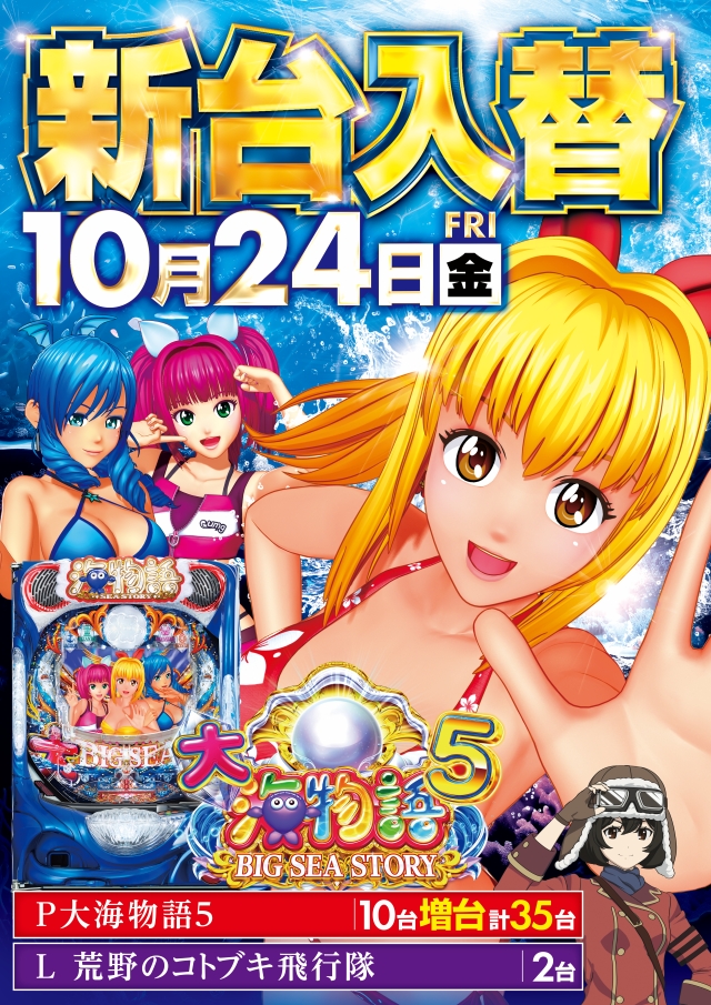 パチンコ Pスーパー海物語IN沖縄6 ハイミドル4台 eとある科学の超電磁砲PHASE NEXT ライトミドル2台 e聖戦士ダンバイン3ZEROSONIC ライトミドル2台 eガールズ&パンツァー最終章 ライトミドル2台 P冬のソナタMy Memory SWEET Ver 甘デジ2台 eベルセルク無双第2章 ハイミドル1台 PA義風堂々!!3 甘デジ1台 デカスタPシュタインズゲートゼロ 甘デジ1台