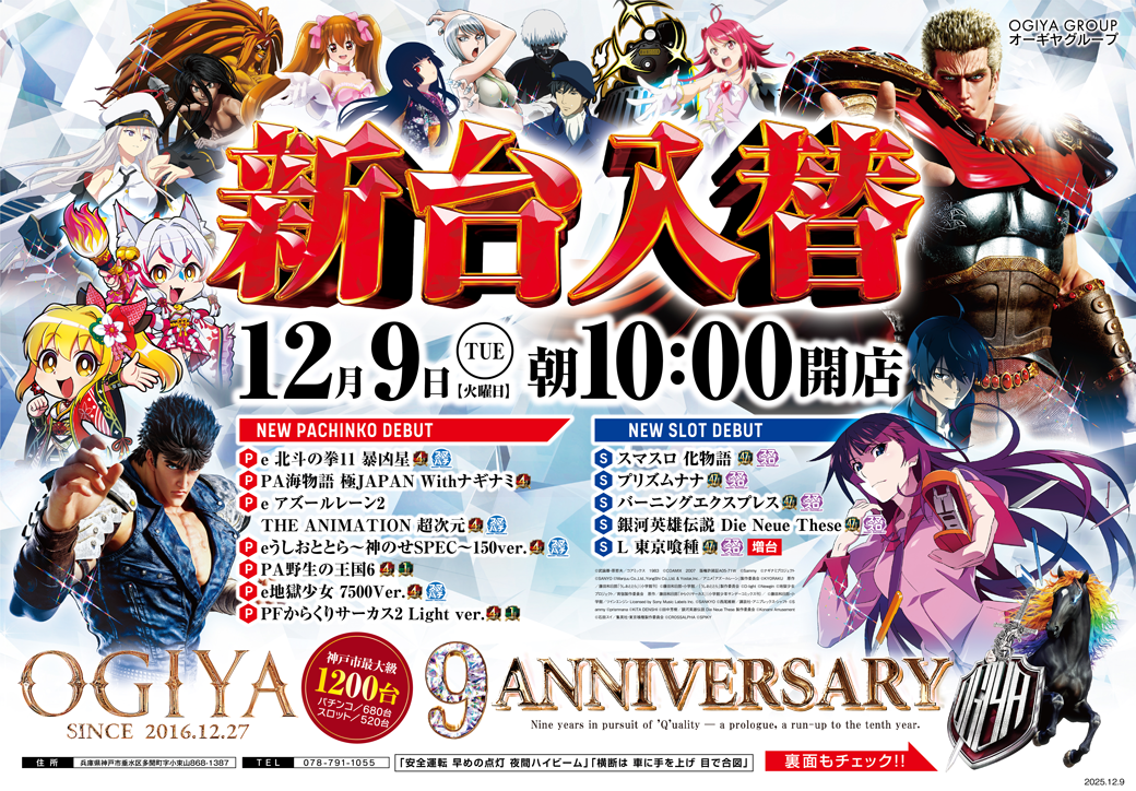 本日8日(月)は新台入替準備の為お休みをいただきます。