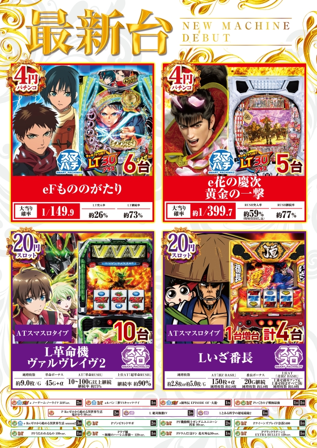 ■Pスーパー海物語IN沖縄6 ■eとある科学の超電磁砲 ■e 聖戦士ダンバイン3 ■P 冬のソナタ My Memory SWEET Version ■e ベルセルク無双 第2章 ■eガールズ&パンツァー 最終章 ■PA義風堂々!!~兼続と慶次~3 99Ver. ■デカスタPシュタインズ・ゲート ゼロ まゆしぃば~じょん ■PFダンジョンに出会いを求めるのは間違っているだろうか2