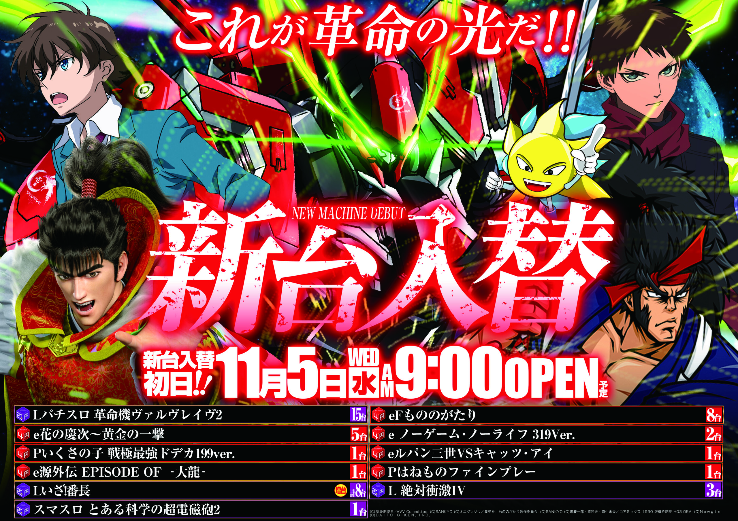 ■e花の慶次~黄金の一撃 ■eFもののがたり ■eルパン三世VSキャッツ・アイ ■e ノーゲーム・ノーライフ 319Ver. ■e源外伝 EPISODE OF ‐大龍‐ ■e 仮面ライダー電王 デカヘソ239 ■Pいくさの子 戦極最強ドデカ ■P Re:ゼロから始める異世界生活 199ver. ■P Re:ゼロから始める異世界生活 99ver.