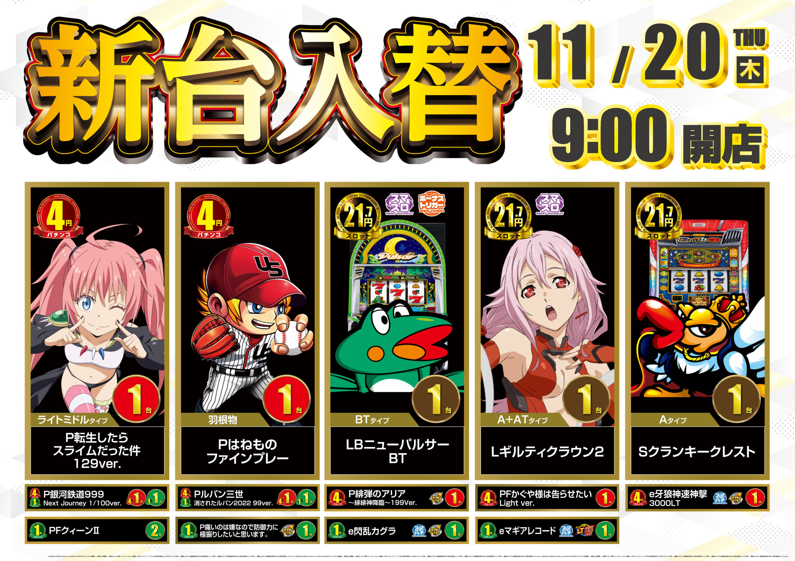 最新機種導入完了!連日AM9:00OPEN