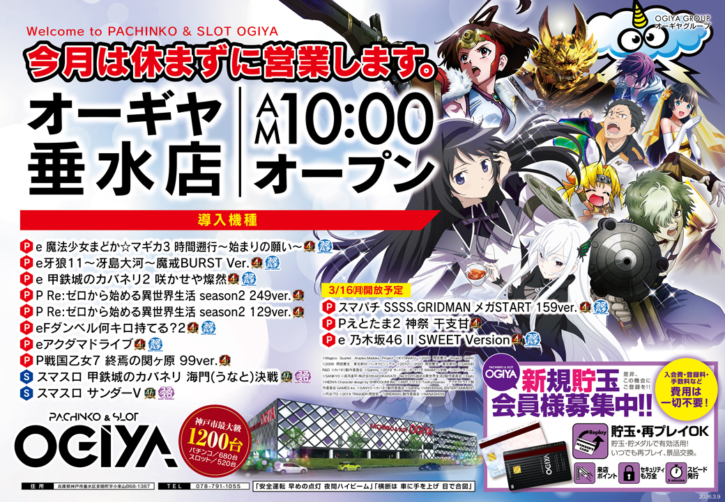 最新機種導入完了!連日朝9時OPEN