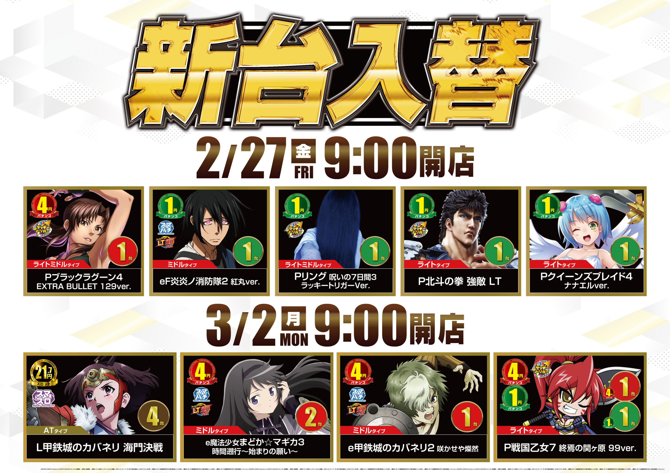 ☆3月2日開放 北館最新機種☆