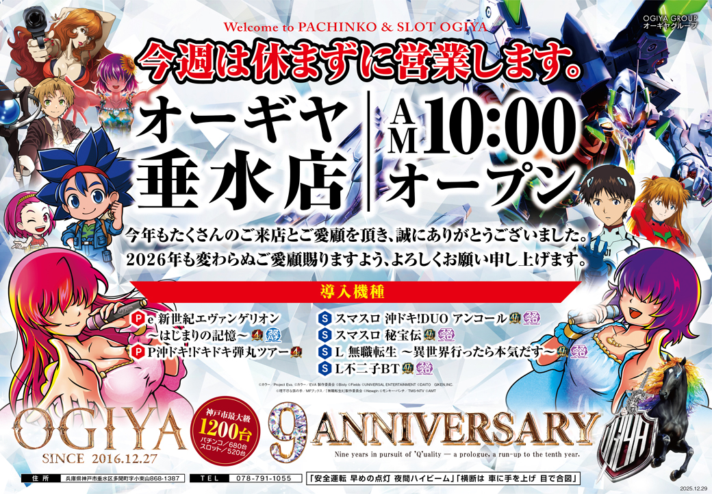 おはようございますオーギヤ駅前店です最新機種導入完了!連日AM9:00開店